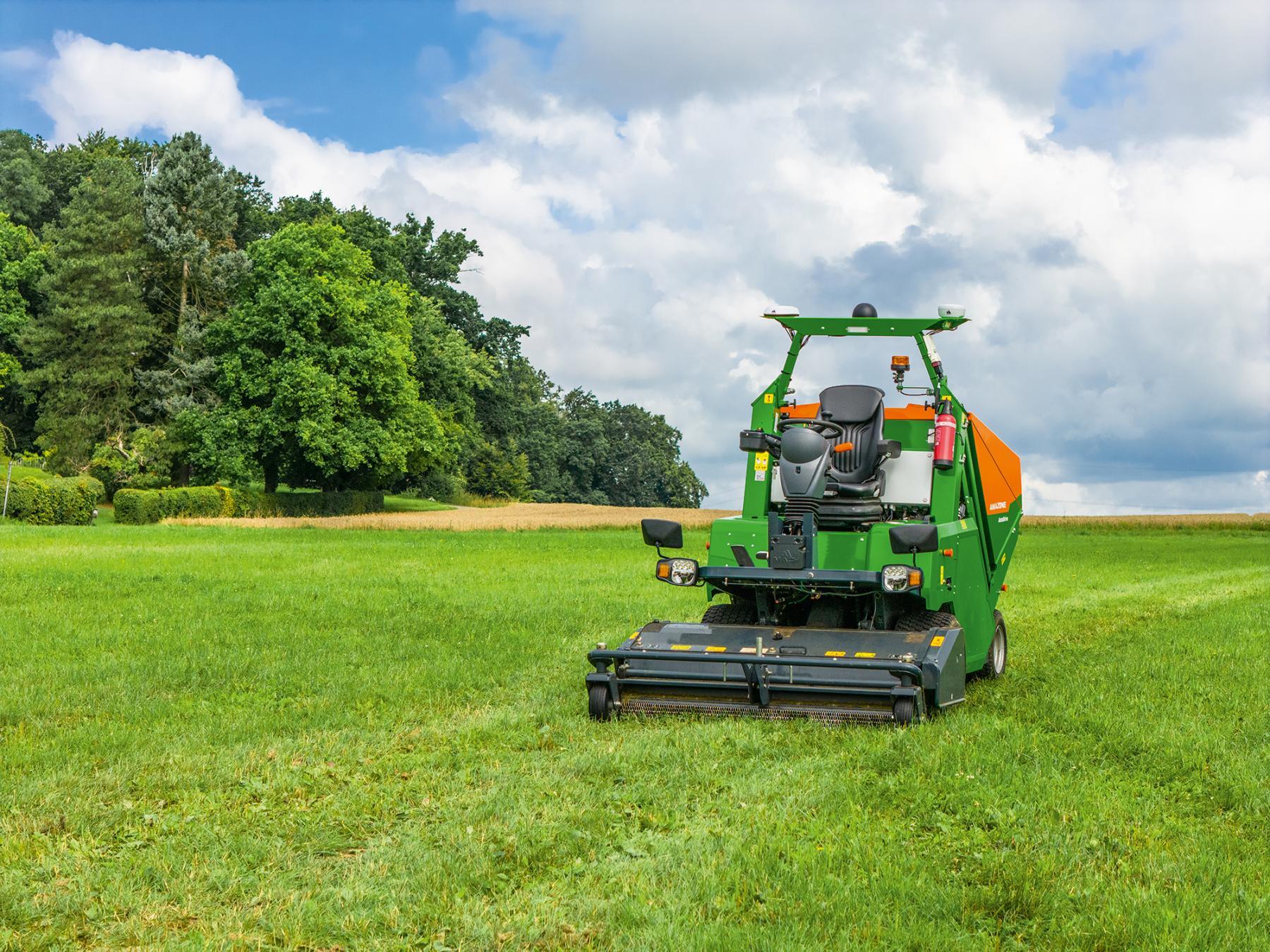 Įrenginys gali pjauti, smulkinti ir rinkti žolę visais režimais. Integruota aplinkos stebėjimo sistema užtikrina maksimalų saugumą – kliūtys ir sudėtingos darbo vietos yra nuolat stebimos ir įvertinamos realiuoju laiku.