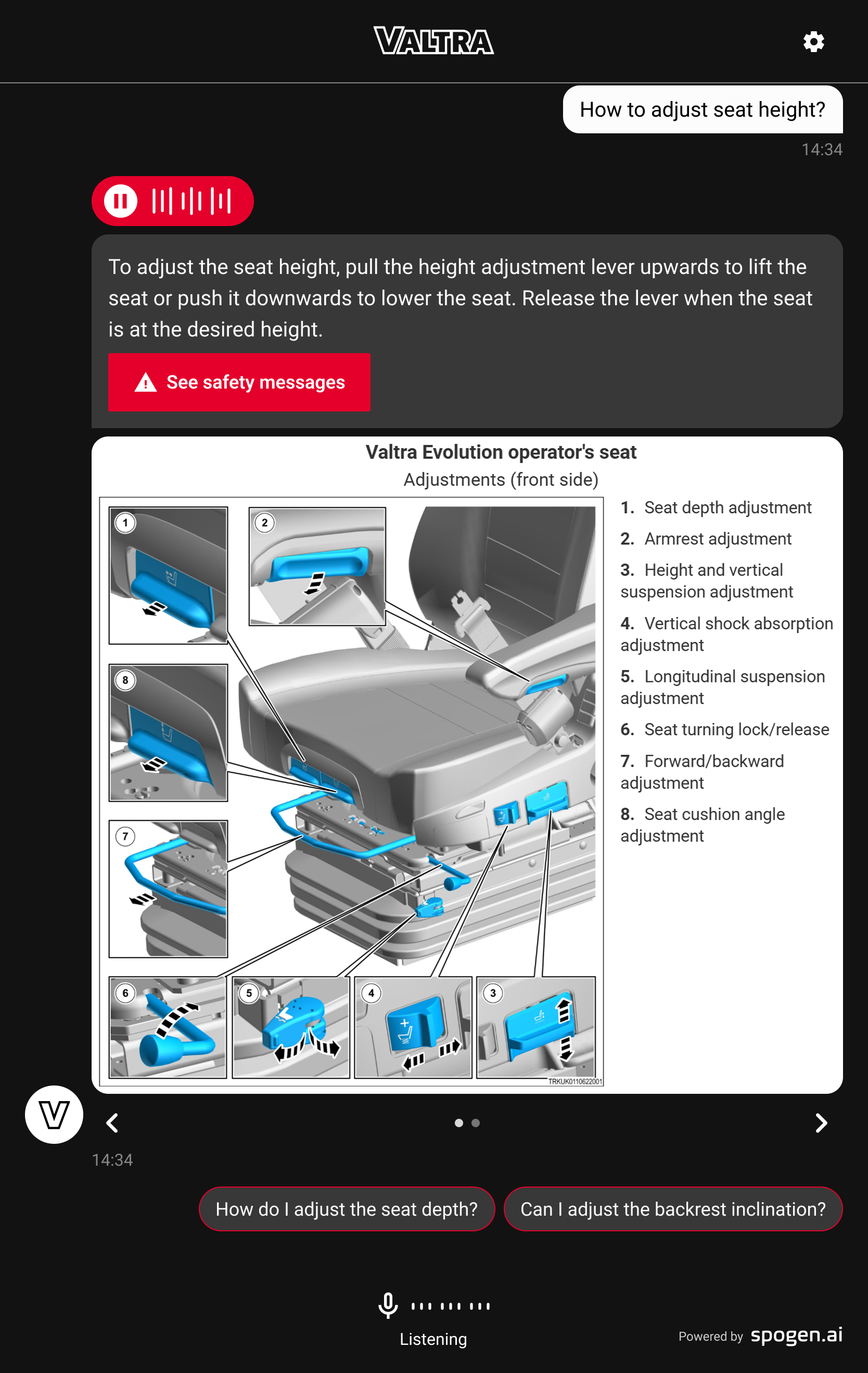 „Tai ne tik kalbėjimas – tai supratimas, kaip ūkininkai gali lengvai naudotis visomis Valtra traktoriaus funkcijomis ir padidinti produktyvumą bei efektyvumą”, – sako Mika Sormunen, Duomenų ir analizės vadovas, Valtra EME. „Kalbantis traktorius gali interpretuoti sudėtingus telemetrijos ir darbo įrašus ir paversti juos aiškiomis, praktinėmis įžvalgomis operatoriui.“