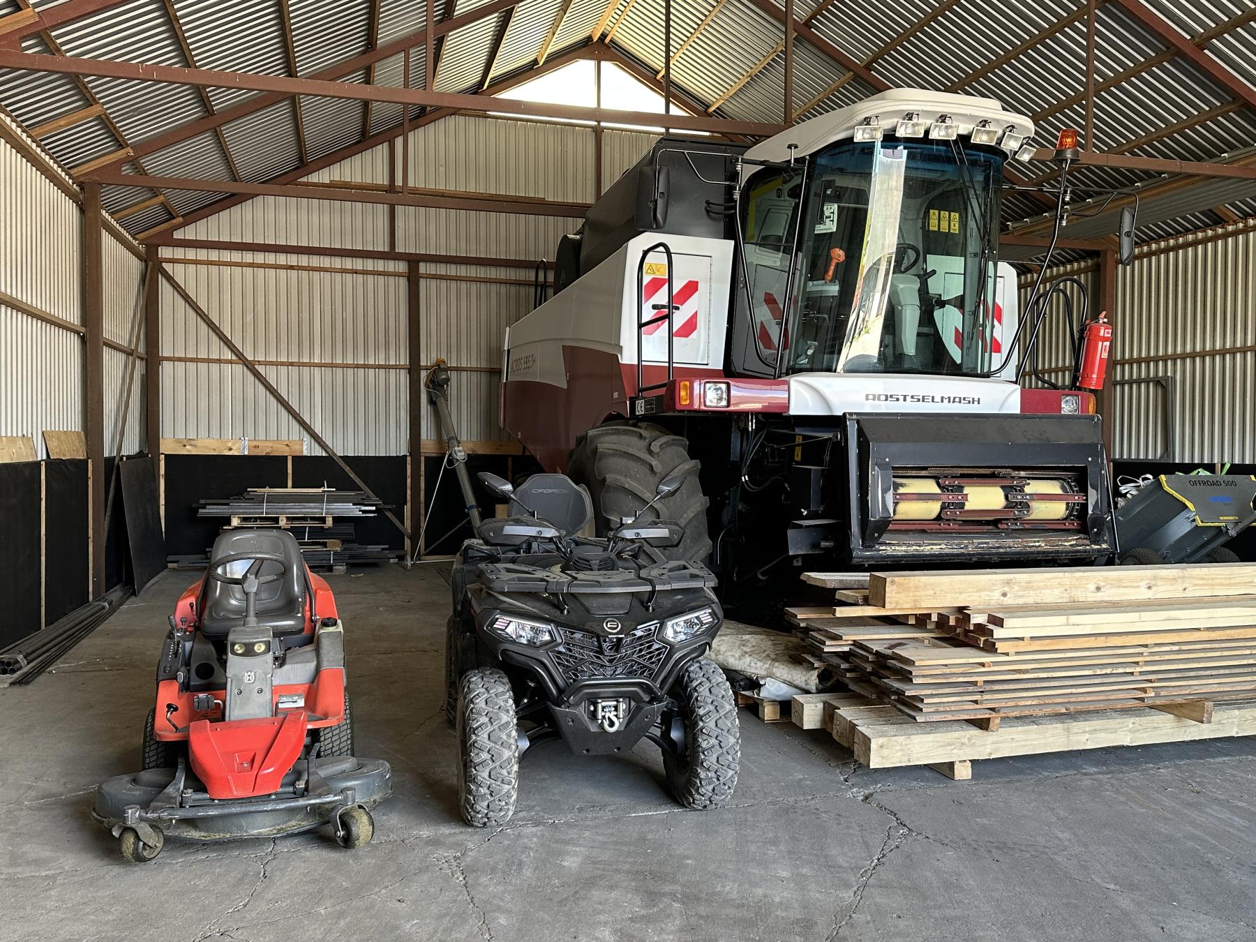 Angaras turi dvigubą paskirtį: žiemą jame laikoma technika, o per javapjūtę išdezinfekuota patalpa laikinai naudojama kaip grūdų perkrovimo sandėlys