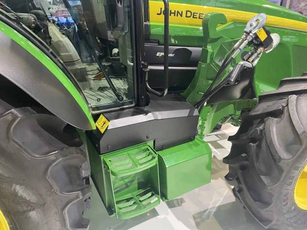 Traktorius gali būti komplektuojamas su iki penkų Kreisel 39 kWh akumuliatorių. Toks rinkinys leidžia kelias valandas atlikti lengvus ūkio darbus — purkšti, grėbti ar vartyti. Baterijų keitimas, anot inžinierių, trunka ne ilgiau nei kavos pertrauka, o John Deere dar kuria įvairias įkrovimo strategijas.