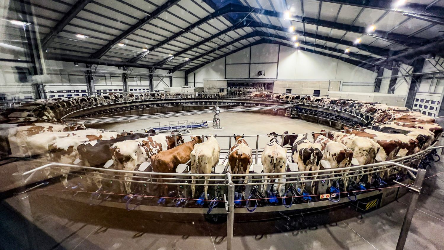 Karvių fermų komplekse sumontuota gilias pienininkystės tradicijas turinčios švedų įmonės DeLaval įranga. Tarp jos – ir rinkoje didžiausia šimto vietų karvių melžimo karuselė. Šiuo metu joje vidutiniškai per valandą pamelžiama apie 360 karvių. Kai gyvuliai pilnai adaptuosis, melžimas vyks sparčiau – iki 700 karvių per valandą.